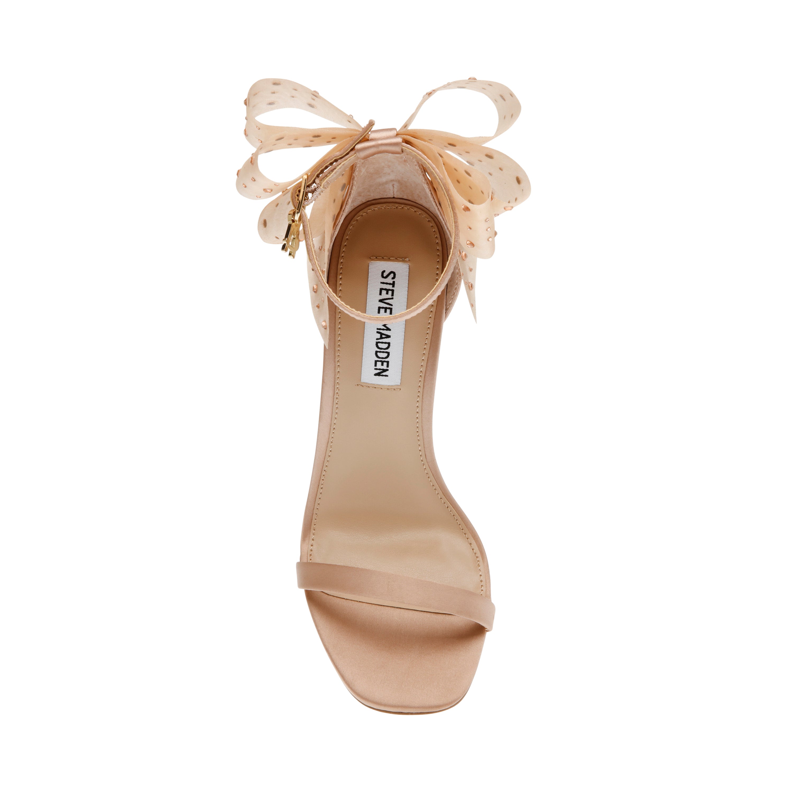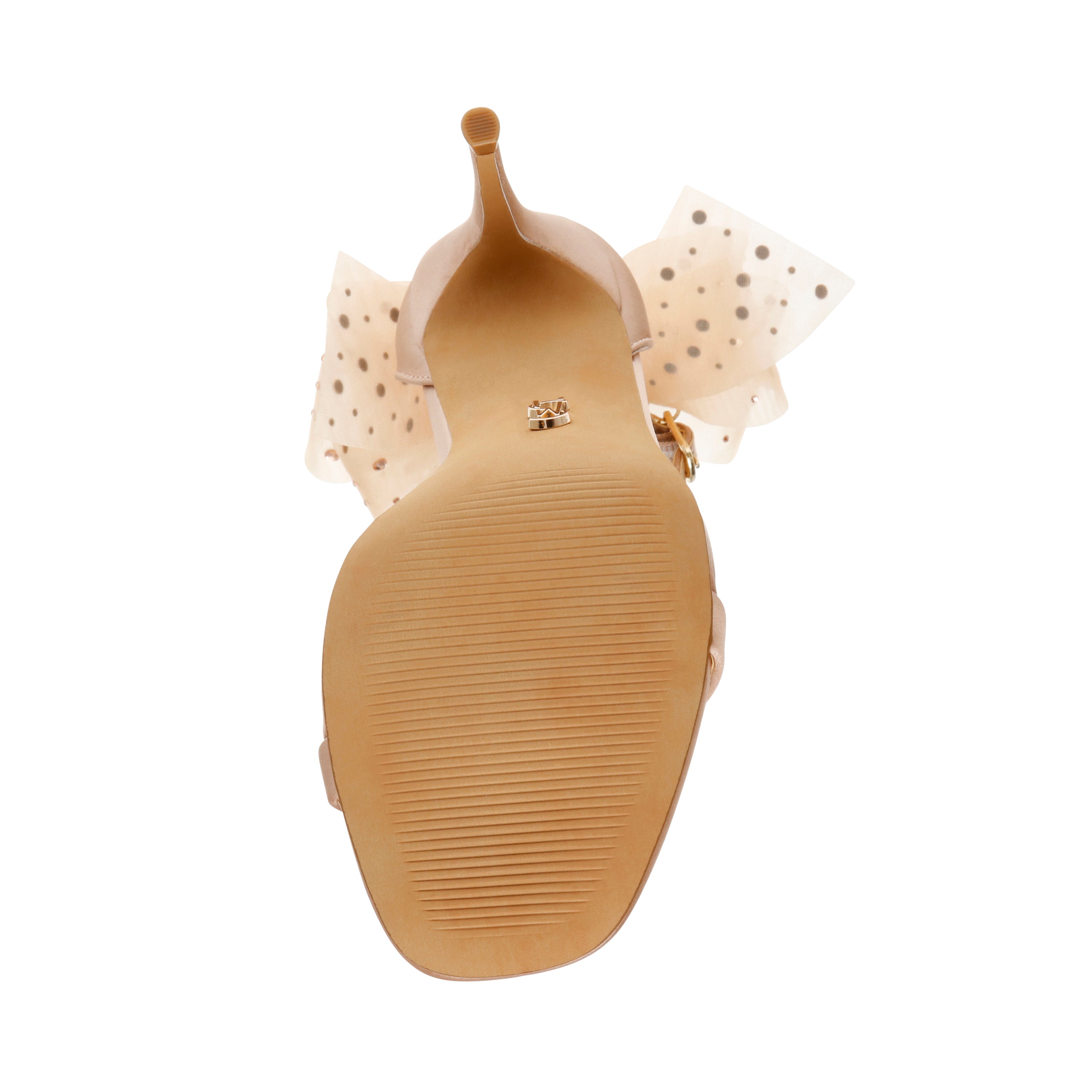 The NIKOLE sandal features a stiletto heel and a round toe, giving the design sleek lines that contrast with the voluminous bow at the back of the ankle.